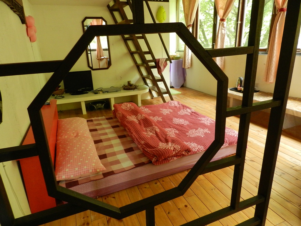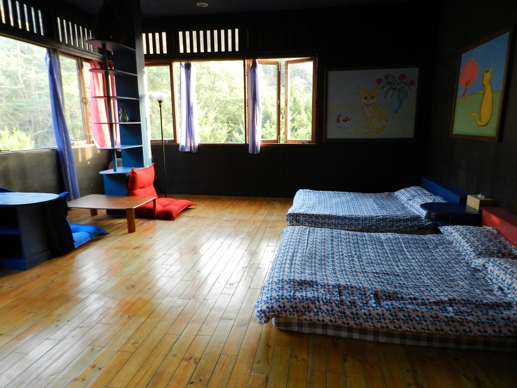 住宿:有 3 間房間,房間介紹請參考『住房資訊』網頁,可讓 15 ~ 29 人住宿。若人數較多,還可在二樓的活動空間加床墊,約可容納 50 人。
